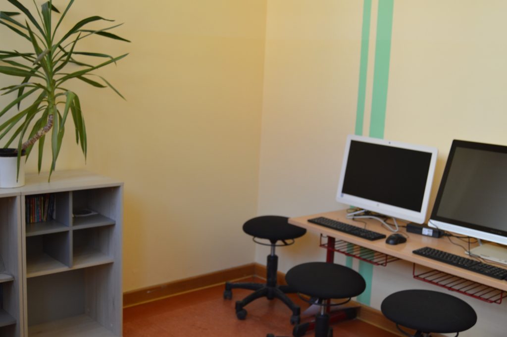 Das Medienzimmer mit zwei Lerncomputern und Tablets