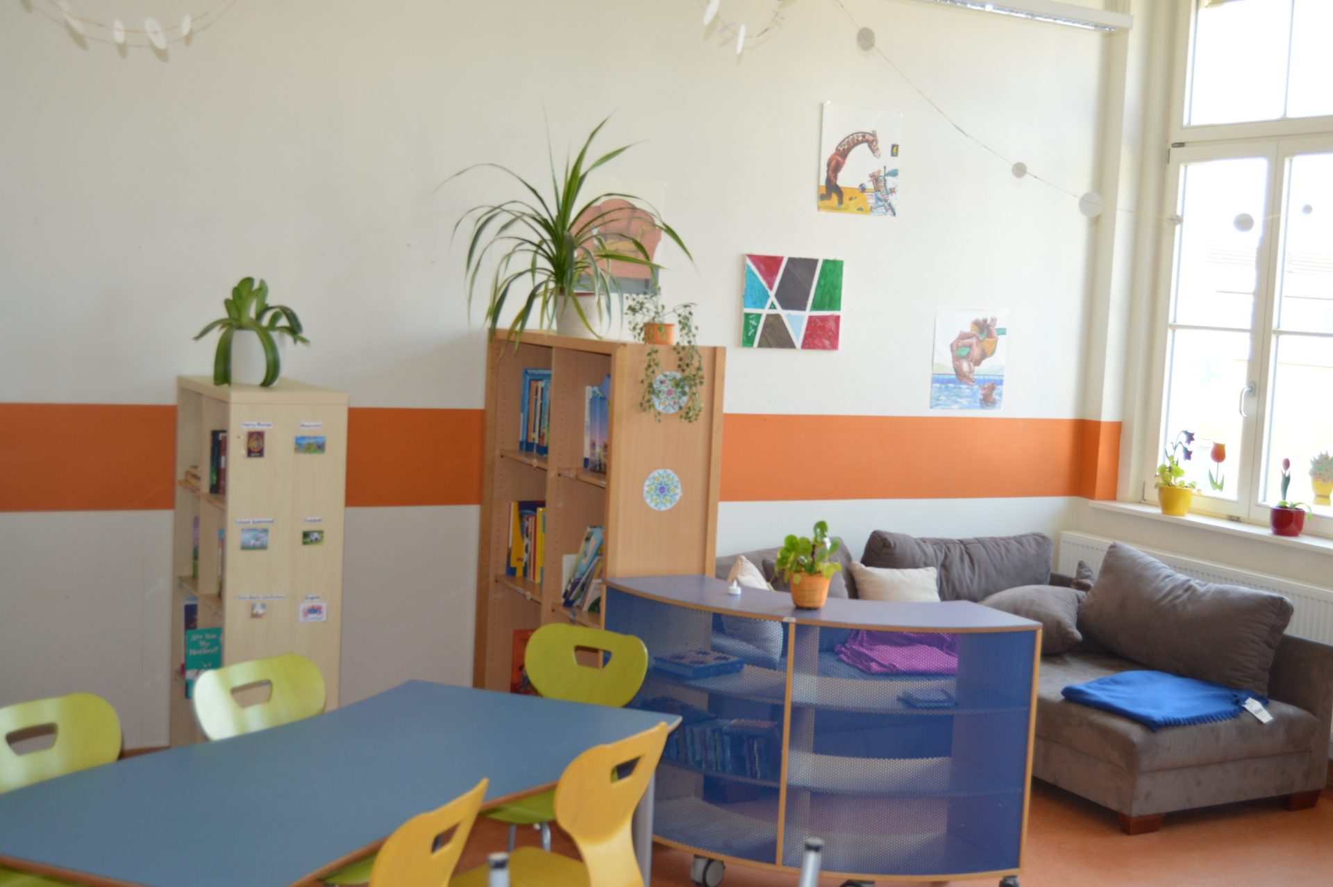 Seit Beginn des Schuljahres 2023/2024 nutzen wir die gegenüberliegende Grundschule am Nachmittag ebenfalls mit. Hier befinden sich weitere Themenräume, in denen das Kind seinen Interessen nachgehen kann.